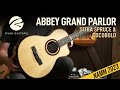 The Kevin Ryan Arts & Crafts Abbey Grand Parlor in Azure is a masterclass in restraint, precision, and quiet authority. Kevin Ryan has spent decades refining his voice as a luthier, building instruments that are instantly recognizable for their elegance, innovation, and tonal depth. With roots in the boutique acoustic movement and a reputation earned over years of disciplined craftsmanship, Kevin does not chase trends. He builds heirlooms. This Abbey Grand Parlor reflects that maturity in every line.
