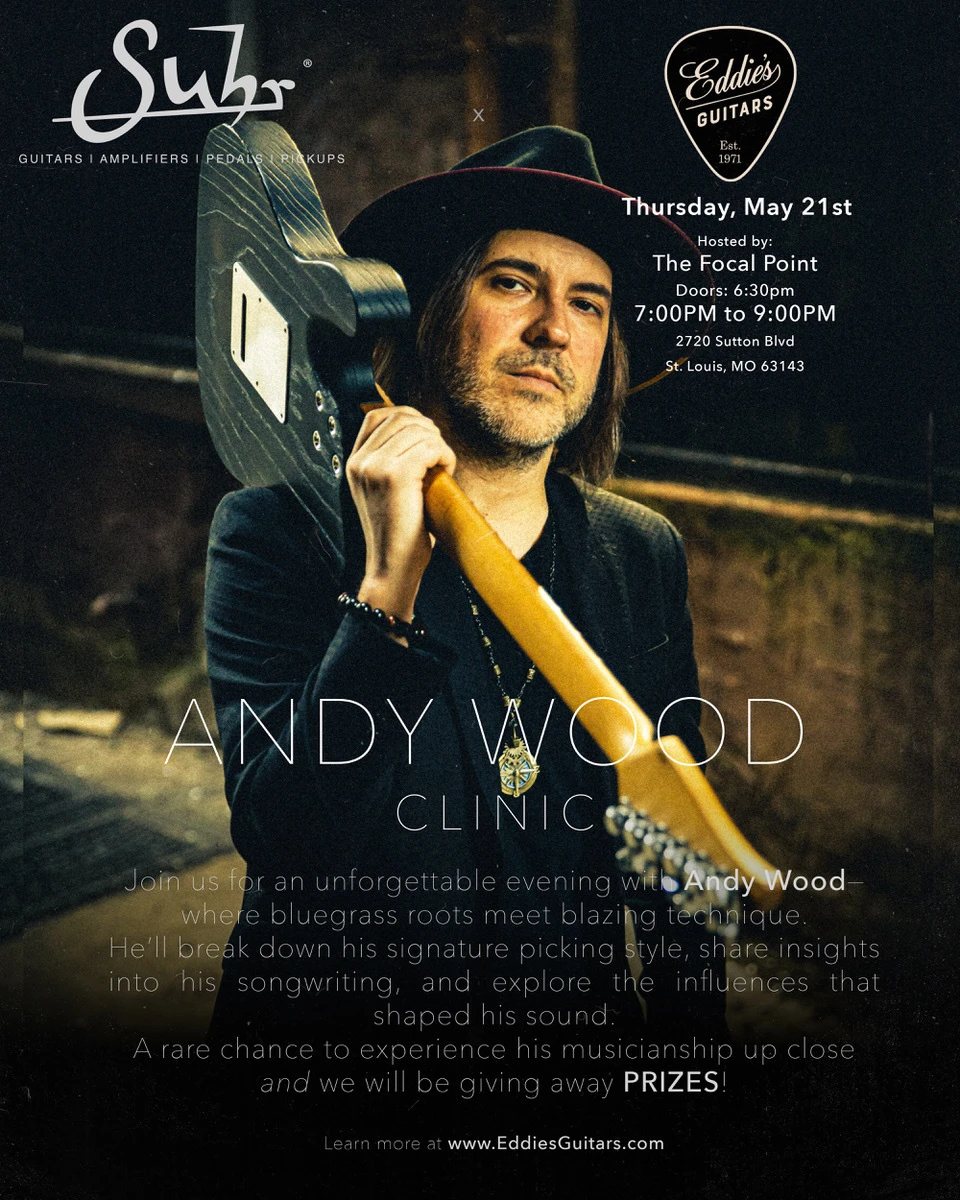 Andy Wood — Suhr Guitars artist, touring guitarist for Rascal Flatts, and one of the most technically gifted players on the planet — is doing a live guitar clinic right here at The Focal Point on May 21st.